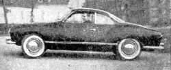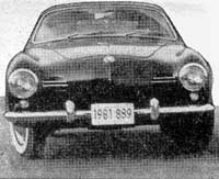 ROADABILITY: So little dip and sway you'd swear she was gyro-stabilized. Light weight and small wheelbase do, however, let it skitter a bit on cobbly surfaces, though torsion bars snub down any amplification of bounce. Tracking superb. Wheels show bulldog grip on curves. Wind wander negligible. Steering quick (2.6 turns lock to lock) .but turning circle radius not as good as you knight think for this small car. Won't turn mound in an average-width two-lane city street. Brakes smooth and positive. Down-pitch almost nonexistent. RIDING AND DRIVING COMFORT: Pleasant cockpit feel in front. With your knees on either side of front bucket seat, rear seat will do in a .pinch, which it does. Front seat head--room okay, but you have to squinch down in rear seat - no headroom to spare. Rear seat will take two - possibly three - 6-year olds nicely, even with 6-ft. driver's legs comfortably stretched out in the front seat. Maneuverability excellent; can drive into parking spot forward. Both front and rear vision excellent compared irregular VW sedan. Windshield car- posts slanted back help in front; large rear window instead of the regular VW's peekaboo port helps rear vision. Vibration moderate. Noise level at highway speeds low - through gears noisier - but seems a little quieter than VW. Shifting smooth in 4 forward gem H-pattern. Have to press down to get shift into dogleg reverse position; shift stick sometimes balks at dropping in. Finding slot for this can be balky business at times, though transmission action is generally smooth and positive. INSTRUMENTS AND CONTROLS: Nice-sizeed steering wheel but thigh of 6-footer tends to strike it when lifted up to apply brake. Roller gas pedal not tiring as we speculated it might he on VW. Brake and clutch pedals small and close together; gas roller also close. So teach your feet how to differentiate when you drive a Ghia. Controls simple. Directional signal better than on 1955 VW - will not fly over into opposite position; also hard to trip accidentally. Gages easy to read but chrome frames mound them seem needless. So does shiny dash top. Lights only for amp and oil. Single (but easy to see) blinking red light at top of speedometer for directional signal. Dome light in center of head-liner above windshield operates when doors open. Ignition-key starting works well though you have to throttle up high in chilly weather for engine to catch. Handbrake holds quite well Door and window handles well placed, but arm rest pull is so far back, your elbow gets caught between door and seat when closing. Grab handle on right above dash handy to hang onto but would make a nice teeth remover in a crash. Glove compartment small, but pockets on both doors probably give more storage room in front seat than big American models. Catch on test car's glove compartment somewhat fussy. Both smoked celluloid-style sun-shields hung on single front bar. Hard to see through, distort, distort and jitter, and can't be swung to side. Vent knobs on either side under dash. MISCELLANEOUS: Rear engine hood release in rear seat a nice touch. Test car showed battery corrosion due to rear-deck drainage onto battery. Some faulty caulking behind rear storage seat upholstery and few cracks on one section of weather-stripping marred otherwise beautiful and precise finishing job on both interior and exterior. |